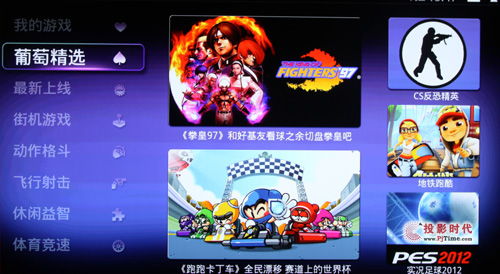 葡萄游戏厅凭借丰富的游戏资源、手柄操作、与牌照商合作、手机版APP、海量游戏和简单操作等特点,成为了智能电视游戏的新宠。在这里,玩家可以尽情享受游戏带来的乐趣,让生活更加精彩。