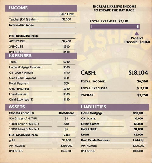 现金流游戏中的关键环节之一是将贸易后的各项数据填入财务报表中。这个过程虽然复杂,但却是游戏的精华所在。通过填写财务报表,玩家可以学习如何阅读和分析财务报表,了解自己的财务状况。