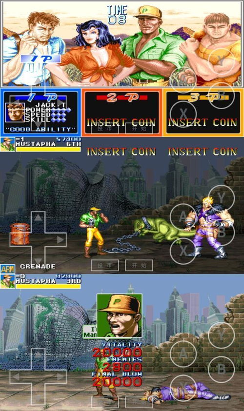 2. 《恐龙快打》:这款由CAPCOM公司开发的横版过关游戏,以恐龙为主题,四位角色可选,最多支持四人同时进行游戏。游戏中的恐龙形象生动,动作流畅,深受玩家喜爱。